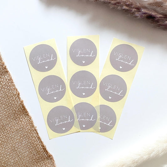 Aufkleber "Vielen Dank" taupe 4 cm rund
