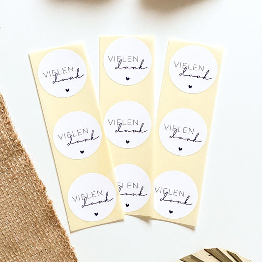 Aufkleber "Vielen Dank" weiß 4 cm rund