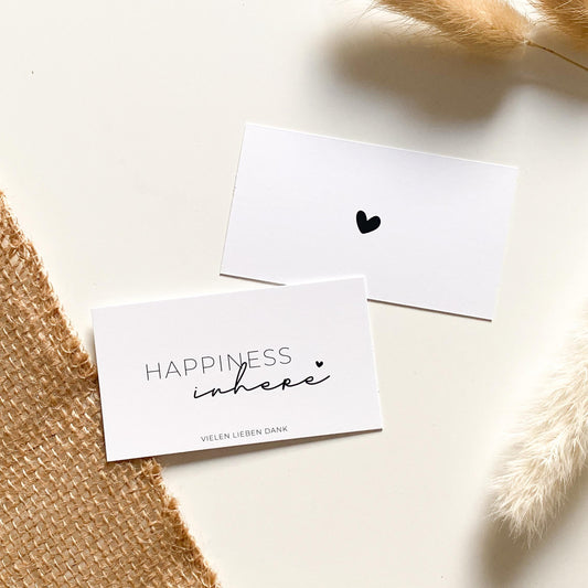 Paketbeileger "Happiness Inhere" weiß/schwarz 9 x 5 cm