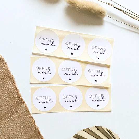 Aufkleber "Öffne mich" weiß 4 cm rund